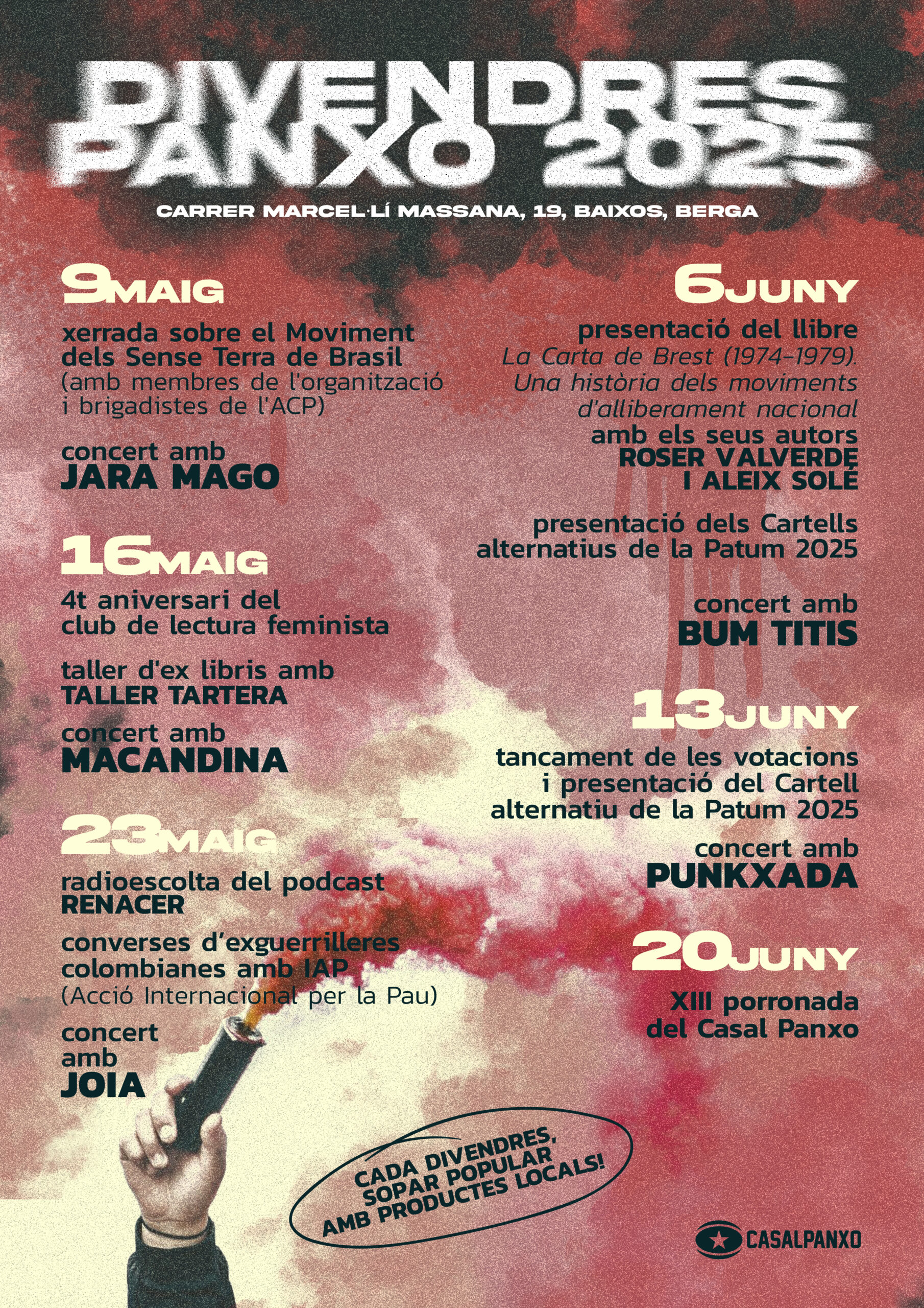 Casal Panxo de Berga Cartell Divendres Panxo 2025Cartell per anunciar els actes dels divendres de primavera al Casal Panxo de Berga