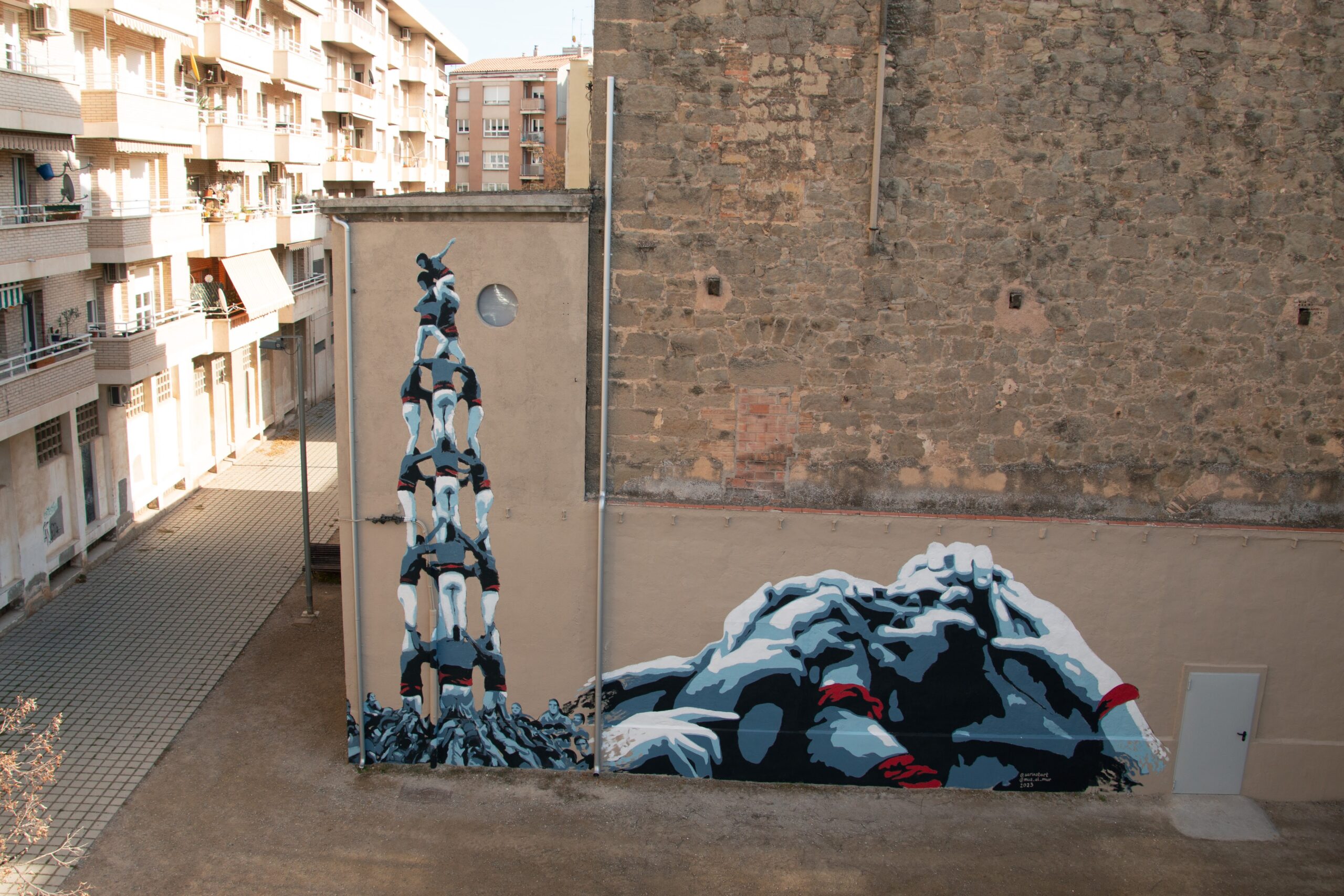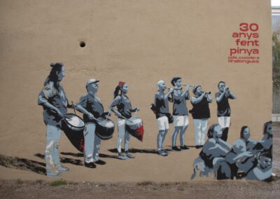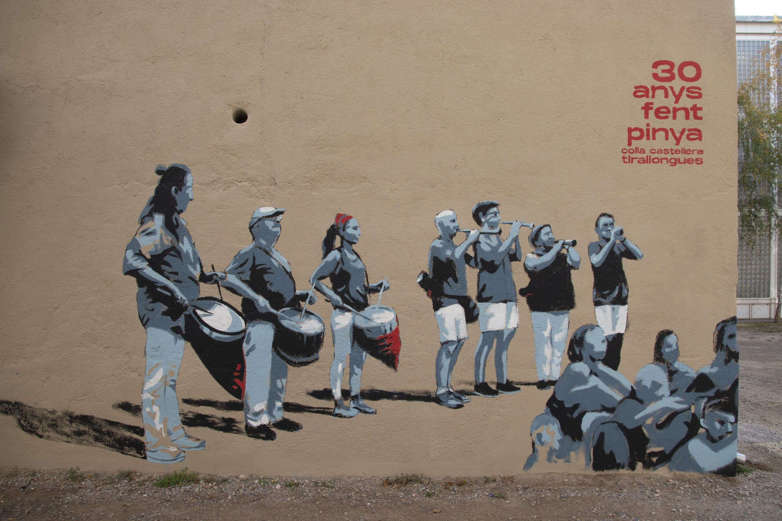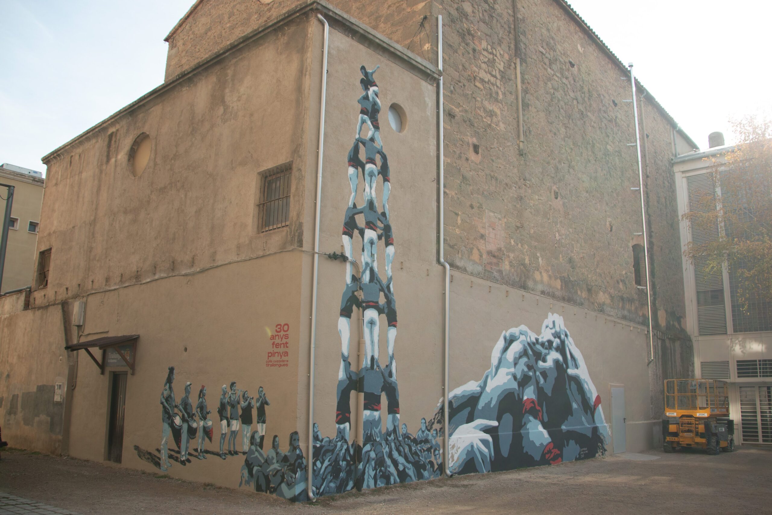 Mural per celebrar el 30 aniversari de la colla castellera Els Tirallongues de Manresa.